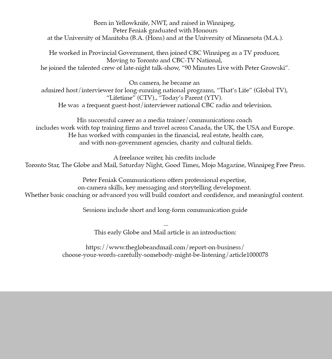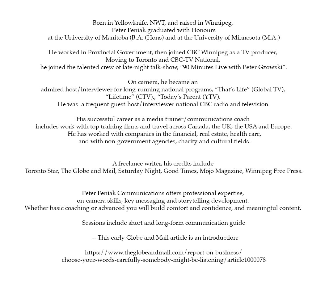 CONTACT- PFeniak@Rogers.com